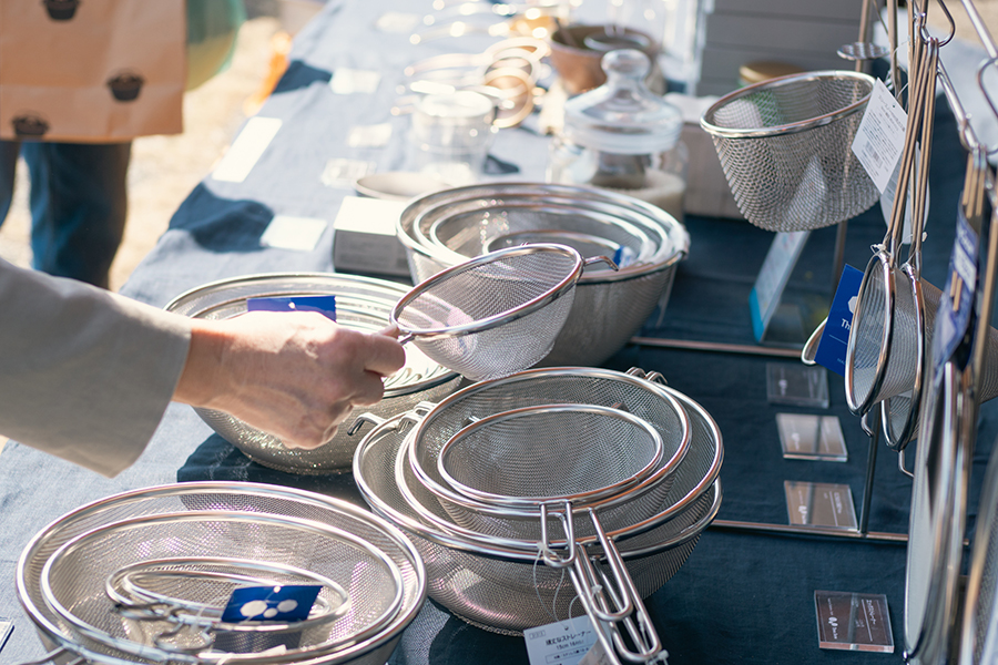 Three Snow は毎年おなじみのザルをはじめ、家庭でも使える調理道具を販売します。また今年は一部プロ向け仕様・サイズの道具もありますので、ご家庭・事業で使えそうな道具たちを探しに来てください。