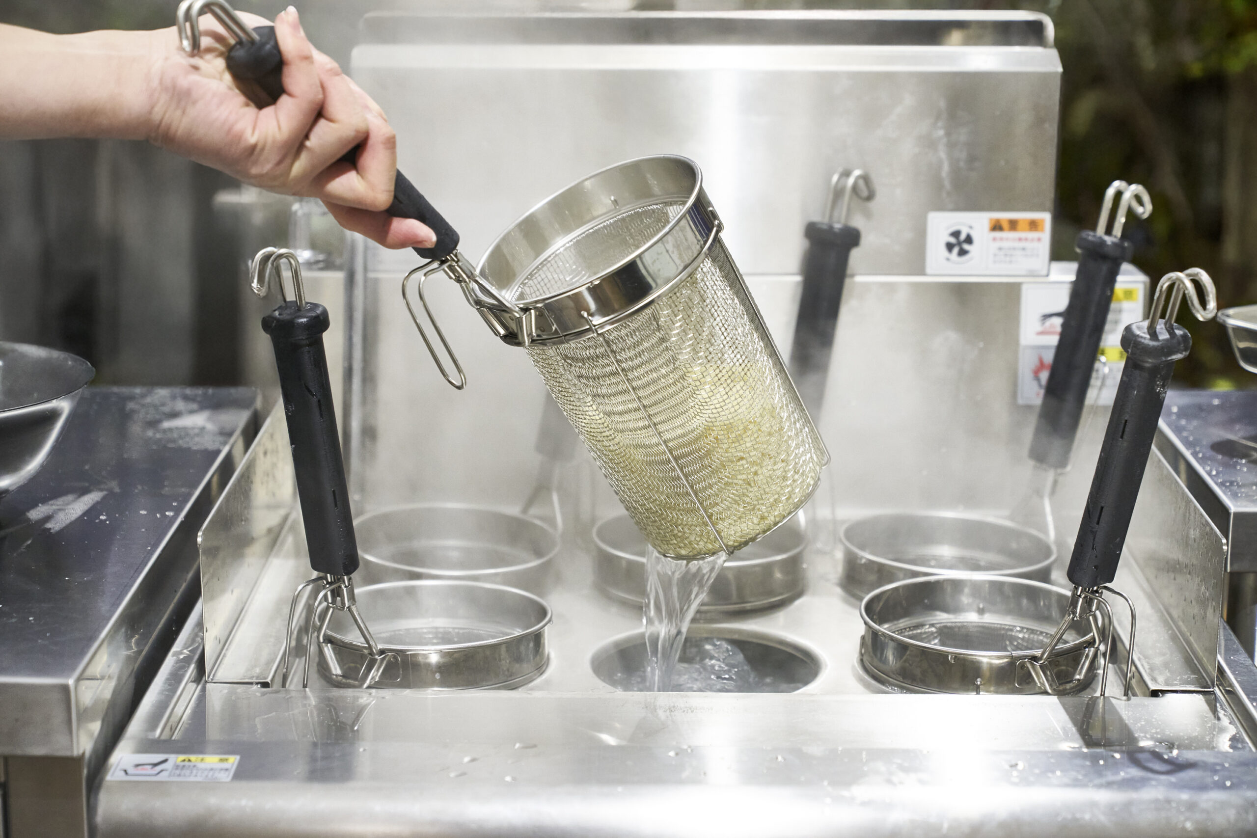 太麺・大盛りに最適!対流効率を最大化したバスケットでムラなく最短で茹で上げる!麺線も簡単・きれいにできます!